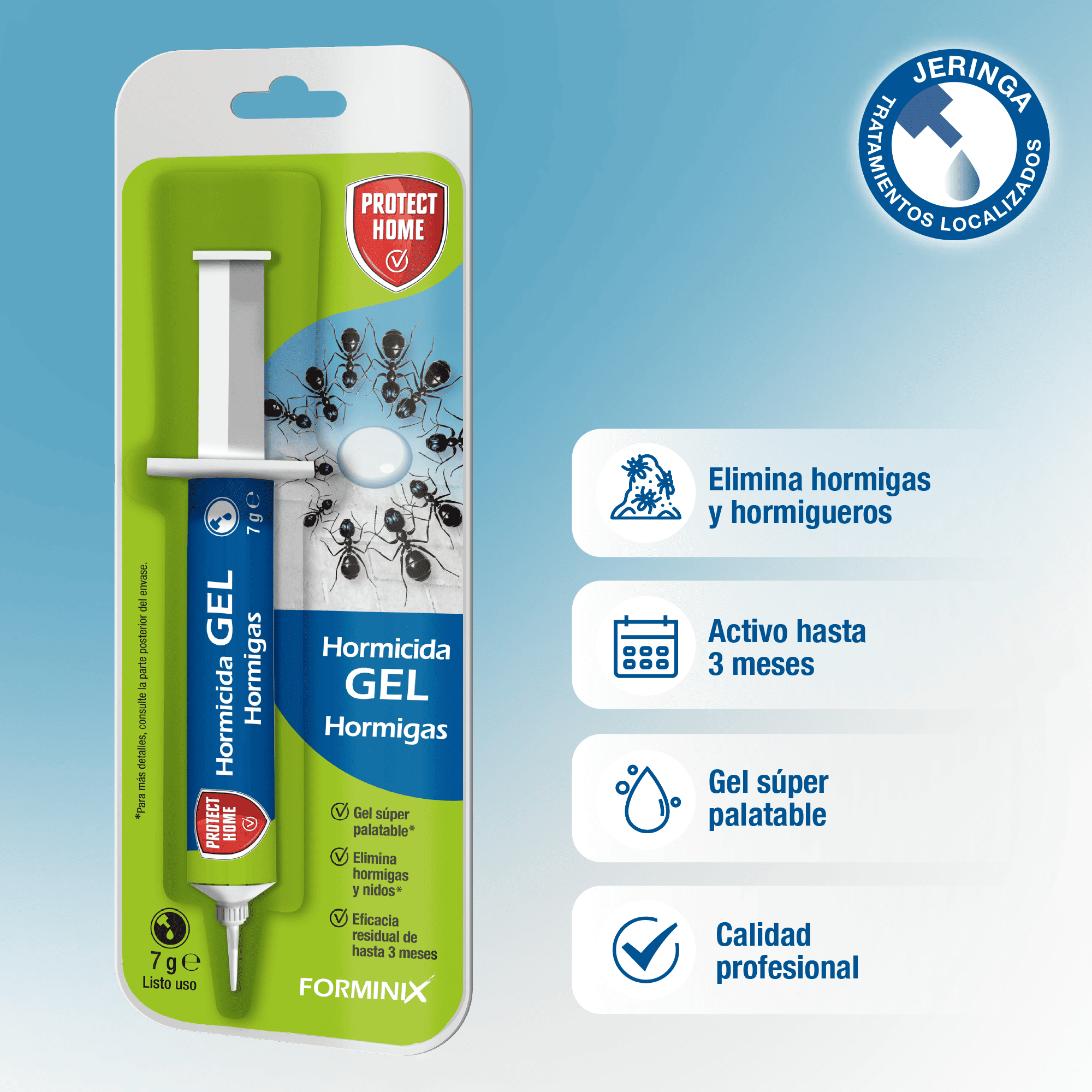 Forminix® Gel Jeringa es un insecticida de acción rápida eficaz contra las principales especies de hormigas, altamente atrayente también actúa dentro del hormiguero.