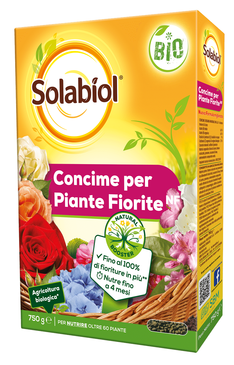 Fertilizante adecuado para el cultivo de plantas con flores (NK 6,5 – 7), cuya combinación de elementos 100% naturales junto con el estimulador del sistema radicular Natural Booster, permite conseguir una abundante y vistosa floración de todas las plantas con flores en macetas y terreno abierto.