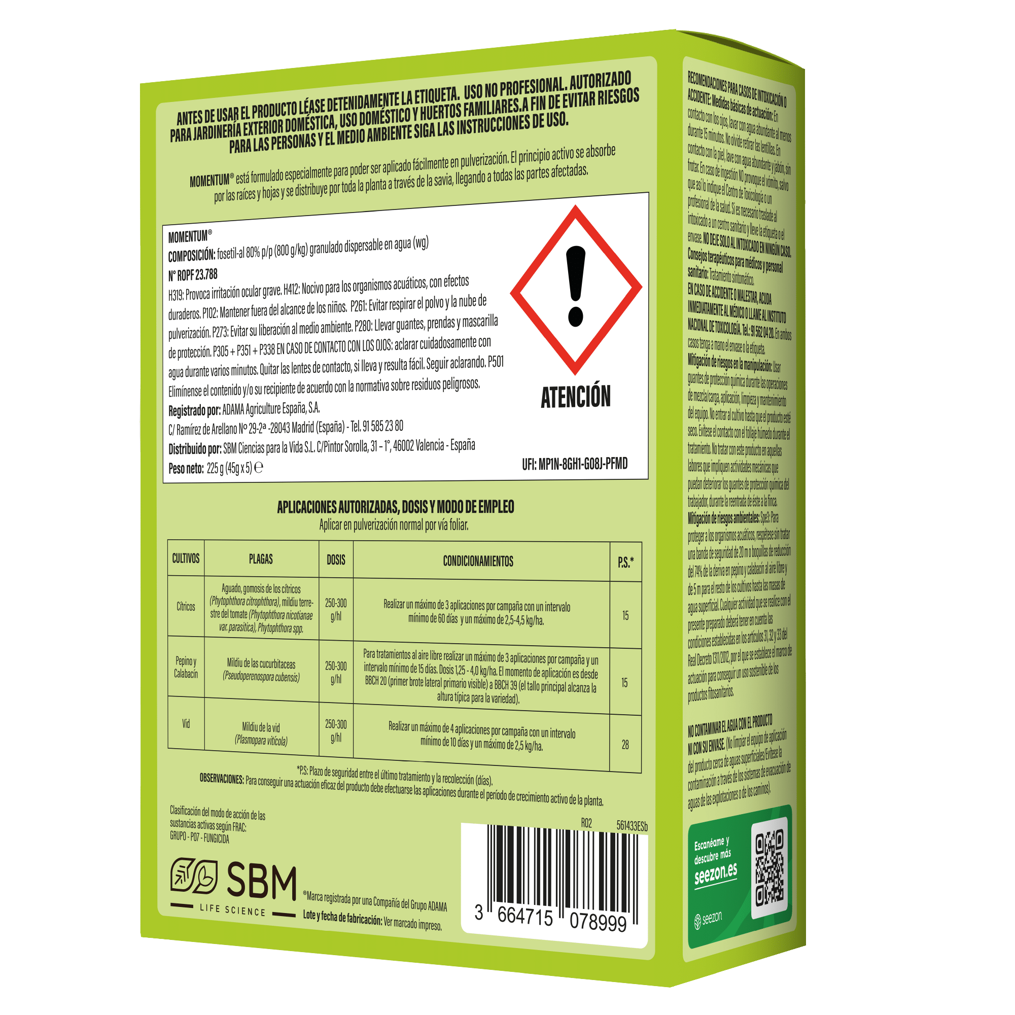 Fungicida sistémico (tanto ascendente como descendente) para tratamientos preventivos y curativos. Específico para el control de aguado y gomosis de los cítricos (Phytophthora
