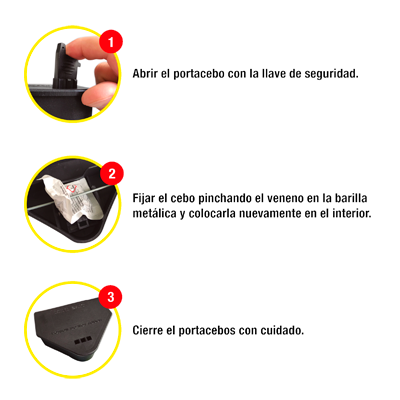 Portacebos para ratones. Con llave de seguridad para evitar el acceso al veneno por parte de animales domésticos y/o niños