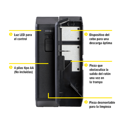 - Elimina hasta 100 ratones con 1 juego de baterías